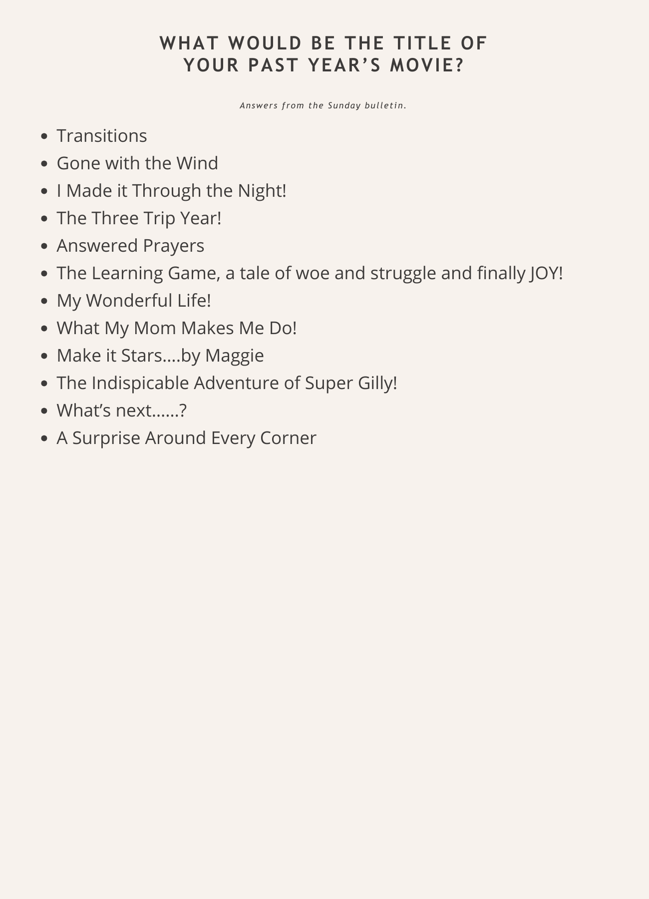 The One Thing Ministry for January is designated for PACEM. Our guests will be staying in the church February 10 - 24. The items needed are: