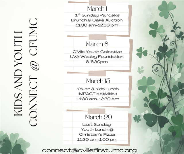 Sunday, March 8th from 12:15-3pm at First Presbyterian Church